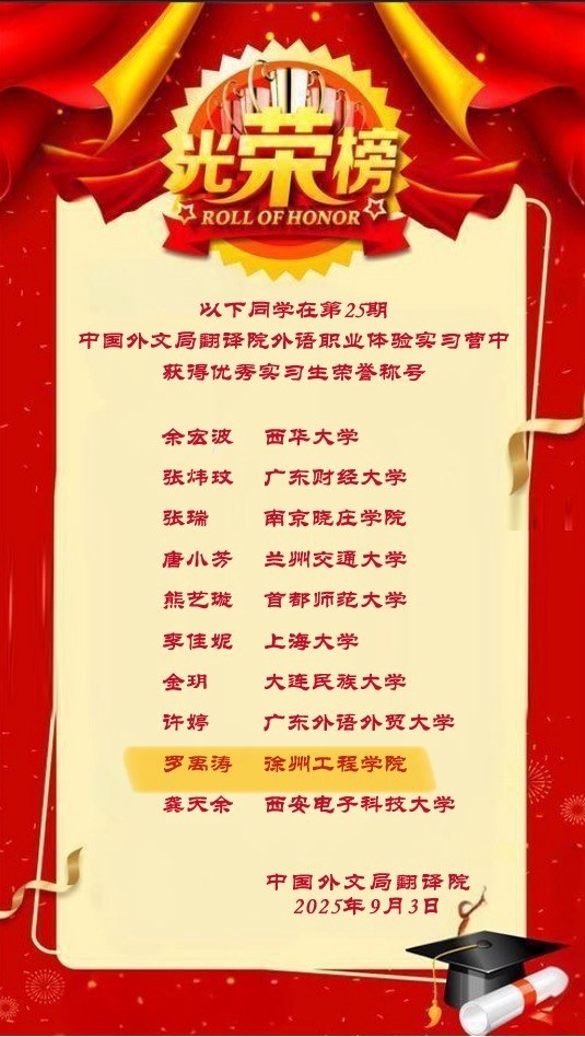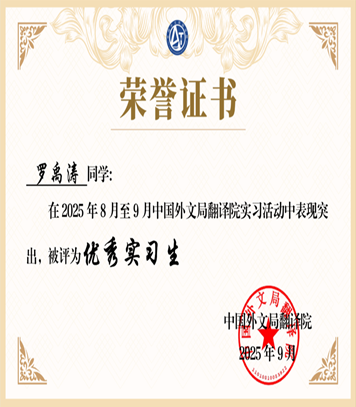 在此次实习中,罗禹涛同学表现突出,被评为“优秀实习生”,充分展现了谈球吧员工在国际传播与翻译领域的潜力与能力。此次实习不仅是一次宝贵的学习经历,也为员工未来职业发展奠定了坚实基础。