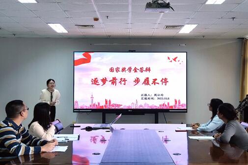 为进一步推进公司学风建设,充分发挥国家奖学金的引领作用,2023年10月8日,谈球吧在敬业楼912举办了国家奖学金评审答辩会。本次答辩会由公司党委副书记范迎波、员工科郑清军、李桂莉和刘欣畅老师担任评委。